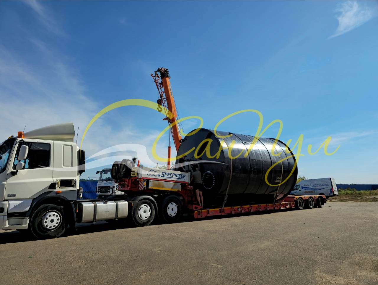 Для того же заказчика изготовлена и емкость для хранения сточных вод объемом 75 м3 (вертикальный цилиндр диаметром 4 м и высотой 6 м).
